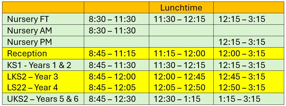These hours do not include the before and after school sports clubs and the after-school Wednesday KS2 clubs that the school provides free of charge.